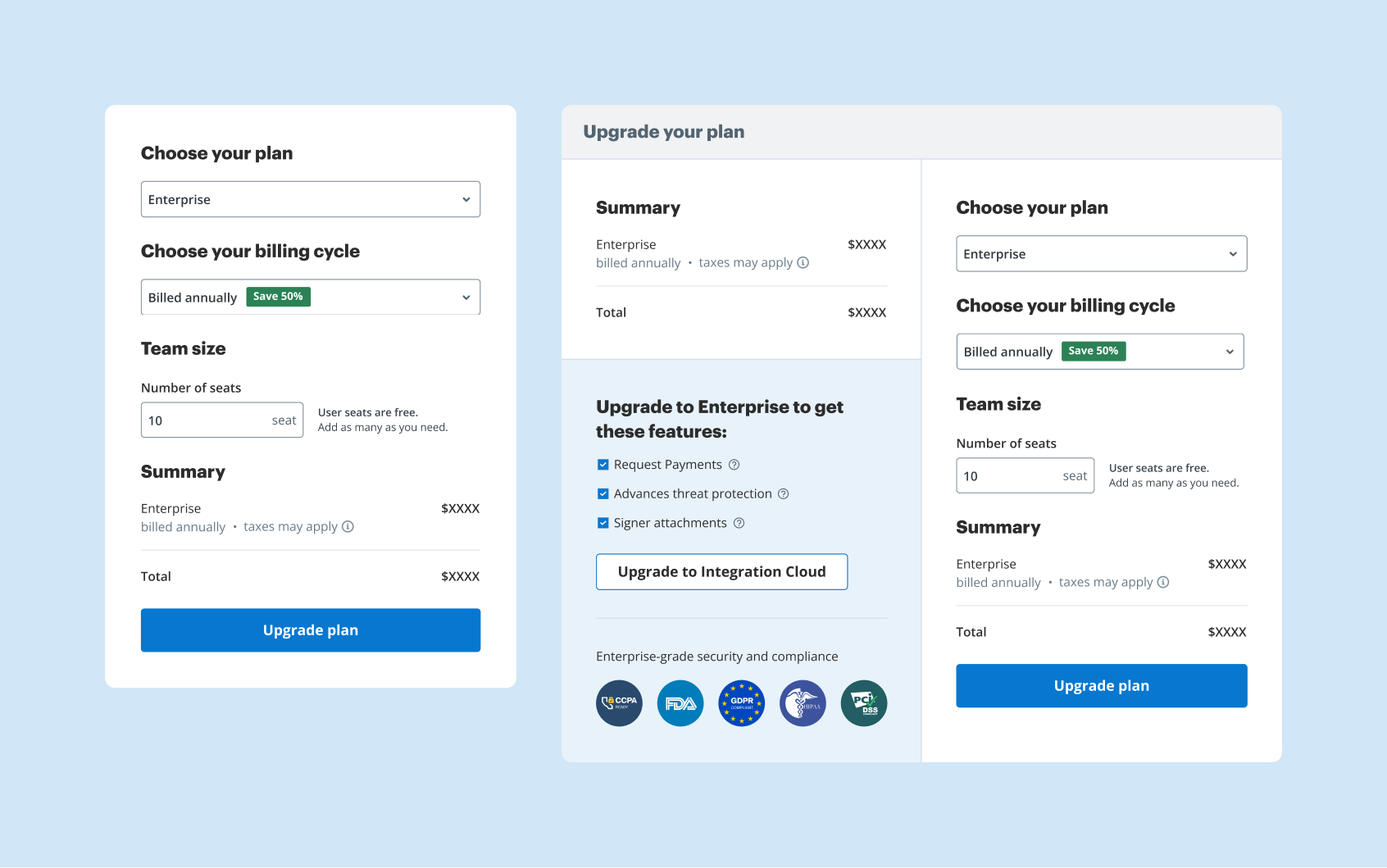 The main goal was to refresh the visual identity and make the product more intuitive and appealing for a wide audience — from small businesses to enterprise clients. The work included creating promotional materials to boost conversion, improving interfaces, and scaling the design system to ensure consistency across all touchpoints.
